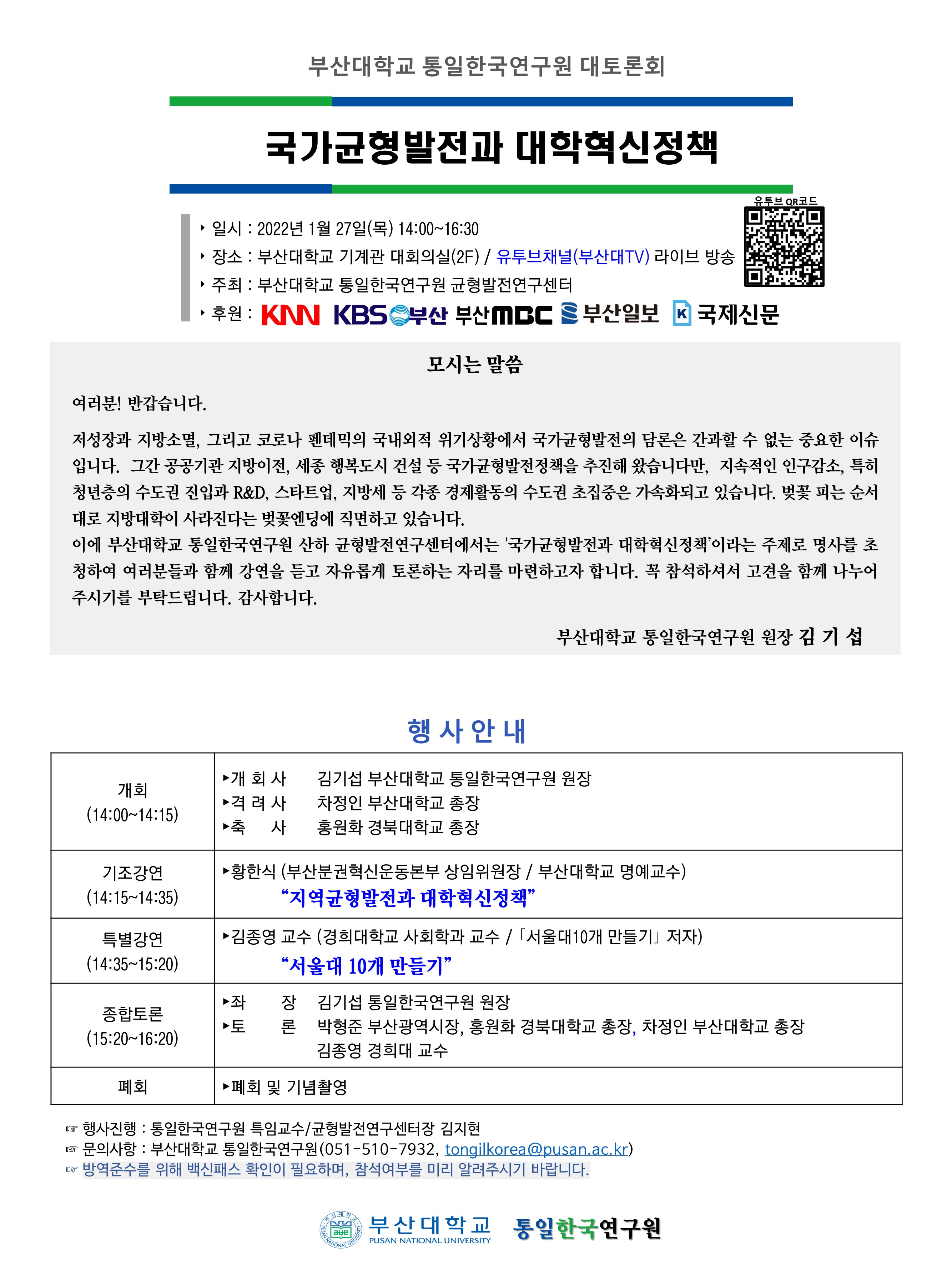 누구나 회의장으로 오셔서 직관 및 토론에 참여하실 수 있으며, '부산대 유튜브' 라이브로도 보실 수 있으니 많은 관심과 참여바랍니다.