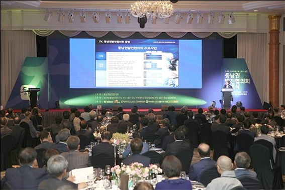 광역 차원의 부산ㆍ울산ㆍ경남 지역의 혁신성장을 이끌 '동남권광역연합' 추진을 위한 민간협의체인 '동남권발전협의회' 출범식 행사가 15일 저녁 부산 서면 롯데호텔부산 3층 크리스탈볼룸에서 성대하게 개최됐다.