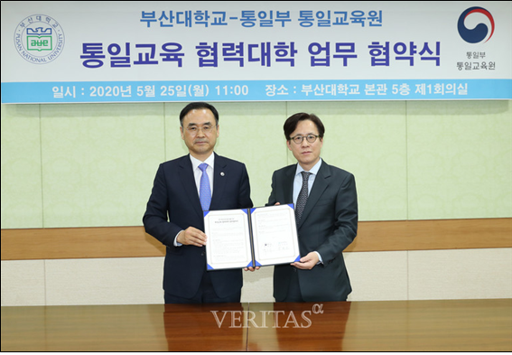부산대학교(총장 차정인)는 통일부 통일교육원(원장 백준기)과 함께 통일교육 활성화와 통일인재 양성을 위한 「통일교육 협력대학 업무협약」을 25일 오전 부산대 본관 5층 회의실에서 체결했다고 이날 밝혔다,