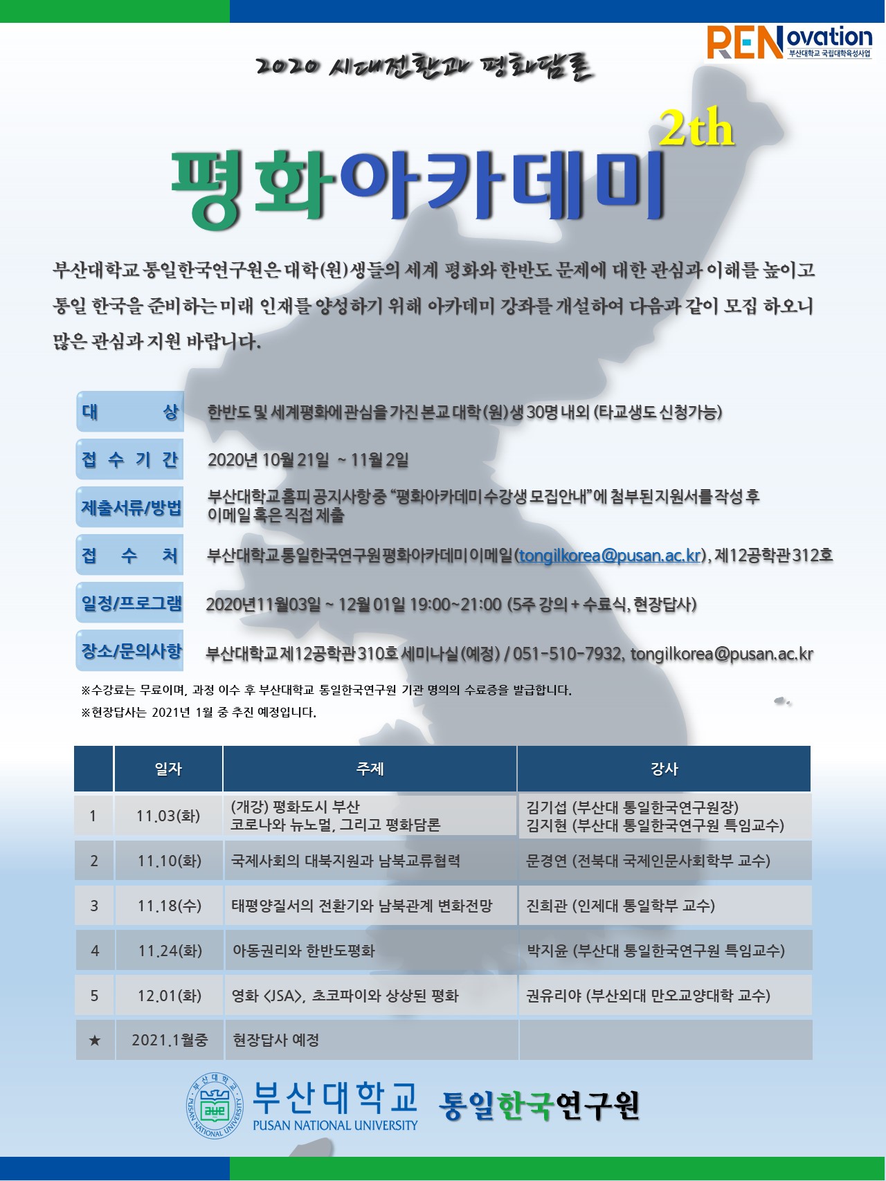 【20.11.03.~12.01.】 평화아카데미[2기] 2020 시대전환과 평화담론