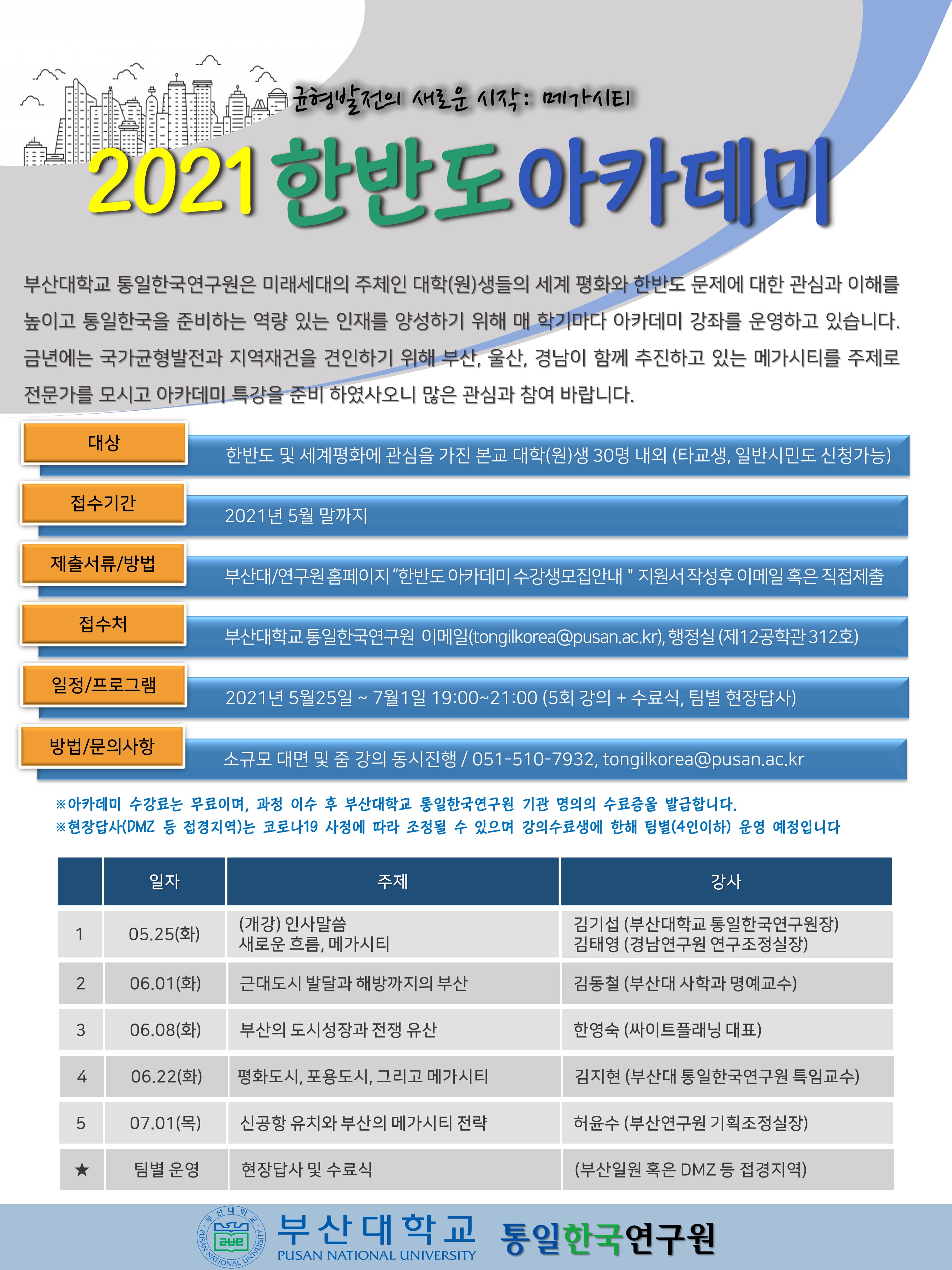 【21.05.25.~07.01.】 한반도아카데미[2기] 2021 균형발전의 새로운 시작: 메가시티